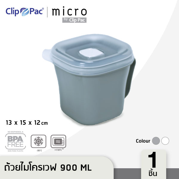 Clip Pac ถ้วยซุป มีมือจับ พร้อมฝา สำหรับไมโครเวฟ รุ่น Micro ขนาด 900 ML (สีเทา)