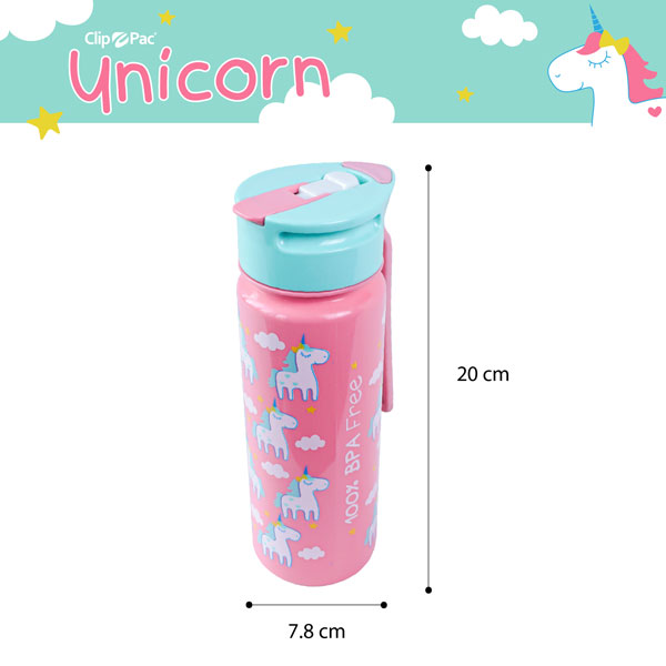 Clip Pac กระบอกน้ำเด็ก กระบอกน้ำ PP ลาย Unicorn ความจุ 500 ML มีหลอดดูดและสายคล้อง