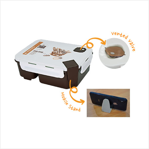 Simplicity – กล่องข้าว ความจุ 1500 ML (แบ่ง 2 ช่อง) เข้าไมโครเวฟได้ พร้อมที่ตั้งมือถือ (Latte สีน้ำตาลเข้ม)