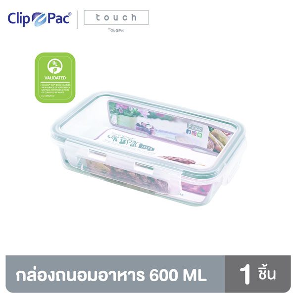 Clip Pac กล่องถนอมอาหาร ทรงเหลี่ยม รุ่น Touch ขนาด 600 ML เข้าไมโครเวฟและฟรีซได้ BPA Free